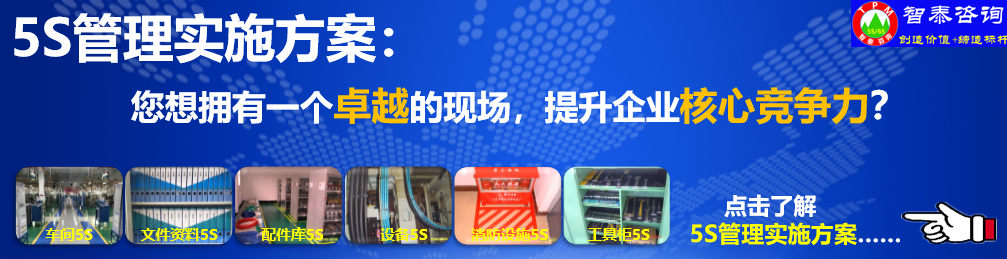 智泰咨詢(xún)下屬的5S管理公司首創(chuàng)的產(chǎn)品三天一標(biāo)桿,三天一條線(xiàn),三天締造6~8個(gè)標(biāo)桿車(chē)間,智泰咨詢(xún)專(zhuān)業(yè)的顧問(wèn)團(tuán)隊(duì)為企業(yè)的5S管理快速打造已形成一套標(biāo)準(zhǔn)化內(nèi)容。