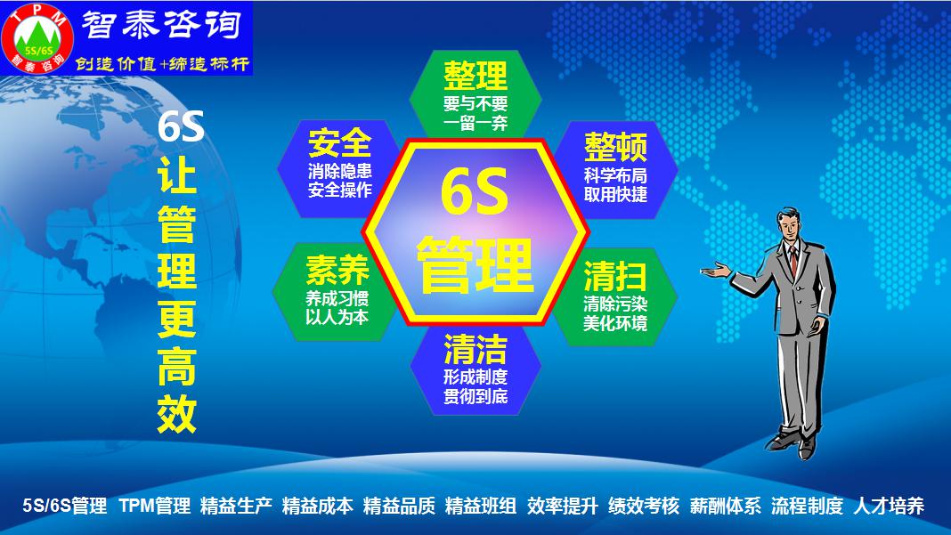智泰咨詢公司給企業(yè)提供專業(yè)的5S管理,6S管理,TPM管理落地輔導與培訓服務;給企業(yè)提供免費上門調研服務和5S,6S管理,TPM管理定制化落地輔導方案。