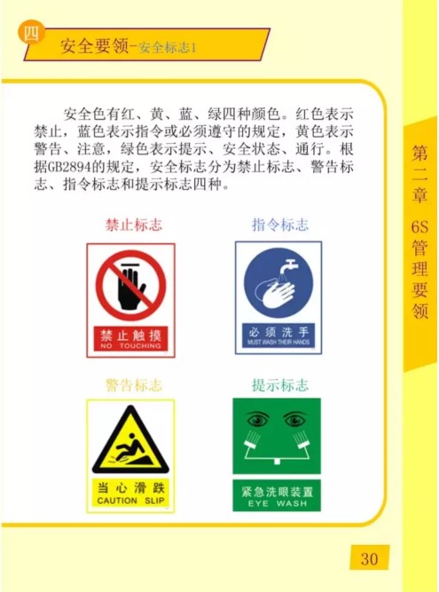 6S管理安全之要領(lǐng) 含義:塑造健康愉快的工作環(huán)境。 目的:確保遵守標準作業(yè),塑造安定感,培養(yǎng)危險預知的能力。 原則:三防:防塵、防銹、防潮,三不傷害。