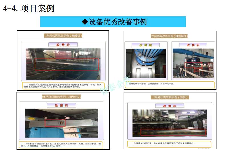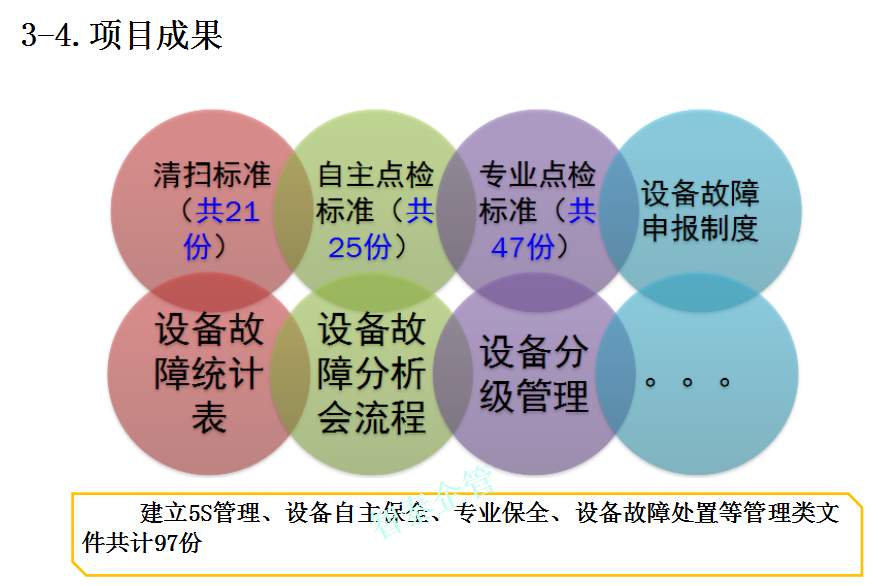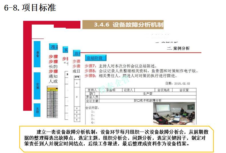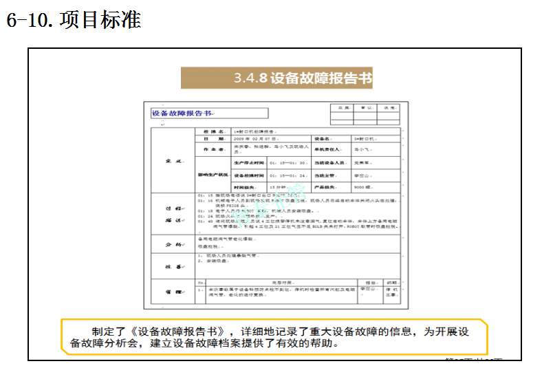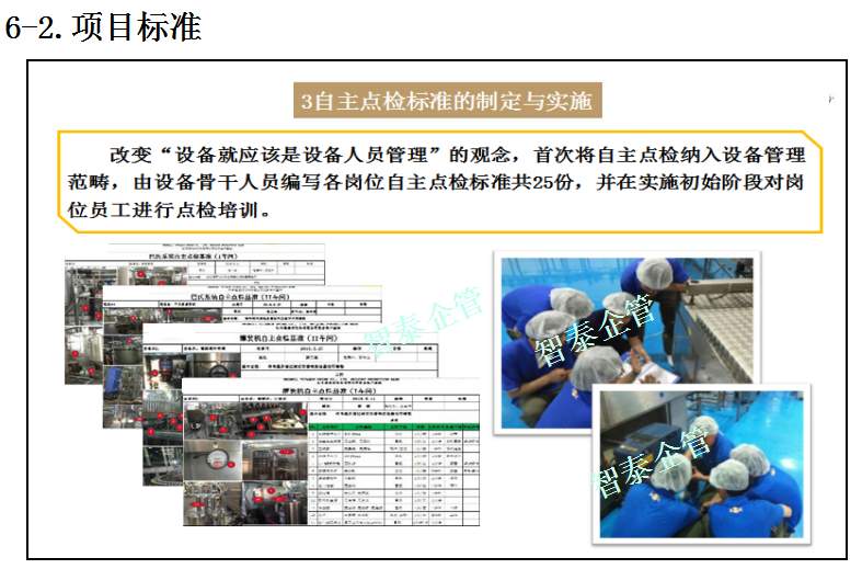 智泰咨詢下屬的TPM咨詢公司為企業(yè)推進的TPM管理活動中,為企業(yè)設備故障率下降推進了大量的制度及標準,通過TPM全員參與活動,消除設備的缺陷并改善及復原,并對設備進行部分改良,促進設備長期穩(wěn)定運行,提高設備生產綜合效率,附件為智泰咨詢專業(yè)團隊在某企業(yè)推進的TPM管理實錄,請查閱: