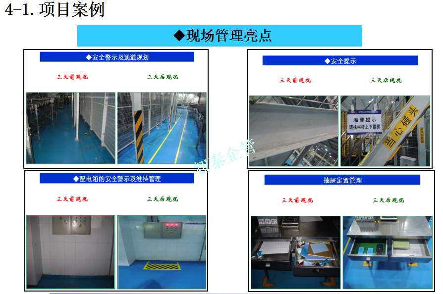 手把手指導打造一個規(guī)范、整潔、高效、安全的工作環(huán)境,隨時可參觀,可檢查,可介紹的生產標桿現(xiàn)場---提升企業(yè)新訂單接單率;