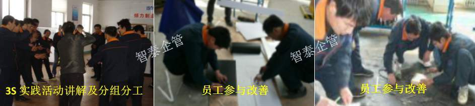 本次活動首先由智泰顧問老師給參加3S活動的人員進行6S培訓,培訓結束后進行分組分區(qū)域,然后來到區(qū)域內(nèi)進行3S活動,員工們正在認真的判定現(xiàn)場的不必要物品并開始清理,組員有的查找6S不合理,有的改善6S不合理,現(xiàn)場活動結束后再整理分析不合理,擬定維持管理標準。