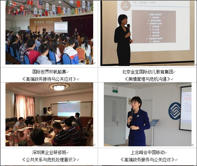 石慧老師擁有15年高級(jí)管理及企業(yè)公關(guān)管理工作經(jīng)驗(yàn),曾任職于世界500強(qiáng)企業(yè)擔(dān)任企業(yè)公關(guān)負(fù)責(zé)人,長(zhǎng)期專(zhuān)注于危機(jī)公關(guān)、危機(jī)管理、媒體事件、突發(fā)事件應(yīng)急管理、領(lǐng)導(dǎo)人的公眾形象和