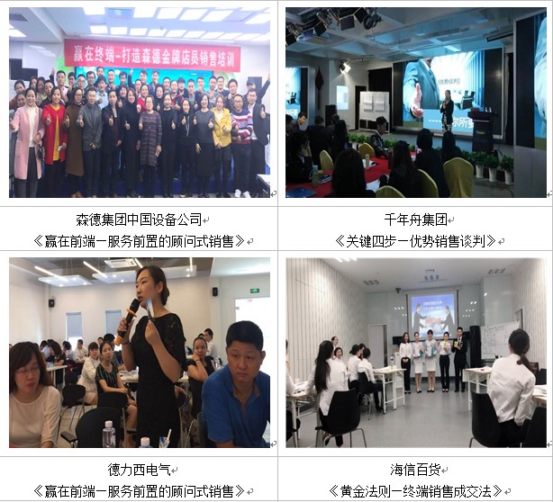 ★老師配合森德集團(tuán)中國(guó)設(shè)備公司分別在合肥、西安、沈陽、北京共講授6期《顧問式銷售—金牌訓(xùn)練營(yíng)》,訓(xùn)練其經(jīng)銷商和其骨干人員近300余人,獲得企業(yè)內(nèi)外成員的高度認(rèn)可,并將課程納入到了森德訓(xùn)練體系教材。