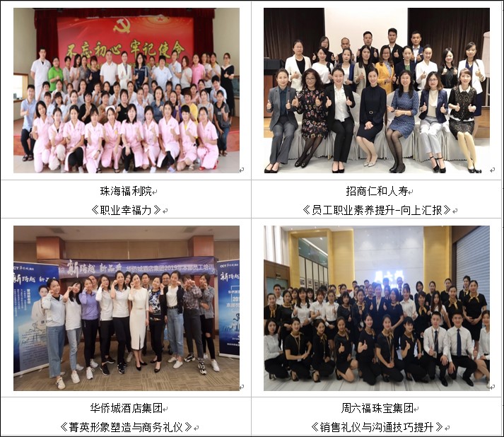 ▲ 曾為周大福集團(tuán)員工中層正副職和基層員工進(jìn)行《職場(chǎng)高效溝通力》課程培訓(xùn),將職場(chǎng)角色及課程核心知識(shí)點(diǎn)融入,幫助員工提升職場(chǎng)溝通能力,得到企業(yè)的一致好評(píng),現(xiàn)場(chǎng)直接加設(shè)《商務(wù)菁英形象塑造與接待禮儀》課程。