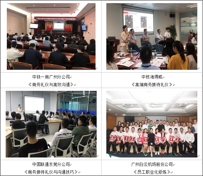 曾詩(shī)斯老師擁有10年省級(jí)媒體及企業(yè)管理經(jīng)驗(yàn),曾為中鐵一局、二局分公司、廣州白云機(jī)場(chǎng)股份公司、周六福珠寶集團(tuán)等企業(yè)進(jìn)行職場(chǎng)商務(wù)形象禮儀、職業(yè)化素養(yǎng)、溝通表達(dá)等系列課程培