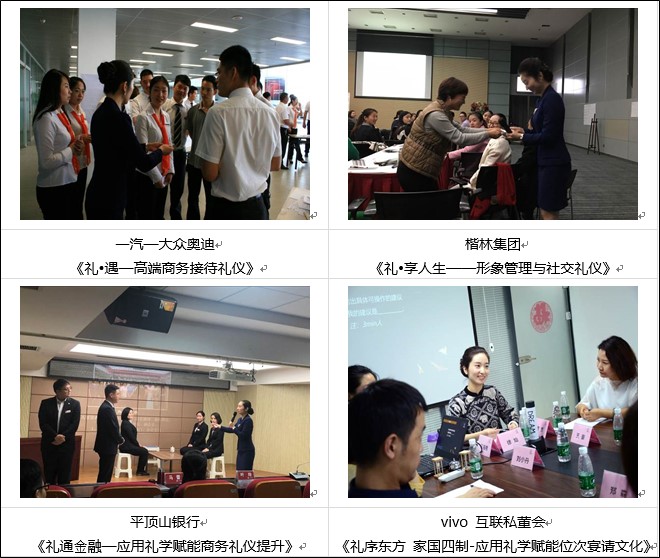 →授課累計(jì)近千場,給近10萬名企業(yè)員工講授《禮贏商運(yùn)》、《禮譽(yù)人生》、《禮贏職場》等應(yīng)用禮學(xué)系列課程,深受學(xué)員喜愛。