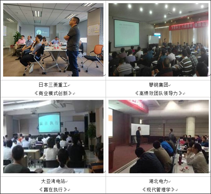 第二大類是企業(yè)內(nèi)訓(xùn)課,已服務(wù)過的一者有外企,如北京美資企業(yè)巴威公司、天津日資企業(yè)大冢公司及上海日資企業(yè)三菱重工和日立集團(tuán)、青島韓資企業(yè)泰光公司、珠海德資企業(yè)TDK等等。再者有國企,如移動(dòng)、聯(lián)通、電信,國家電網(wǎng),中國人壽保險(xiǎn)、中國太平洋保險(xiǎn),中石油,中國農(nóng)業(yè)銀行、中國建設(shè)銀行,重慶、貴陽等多地農(nóng)商行,內(nèi)蒙古東勝煤礦、鄂爾多斯羊絨集團(tuán)、雪花啤酒、五糧液集團(tuán)等等。第三有民企,如復(fù)興、海爾、蒙牛、綠城、報(bào)喜鳥、林氏木業(yè)、奧克斯、良品鋪?zhàn)拥鹊龋?br />